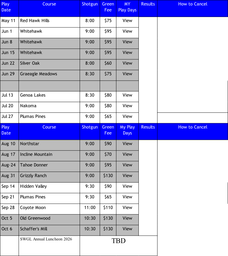 2026 Play Schedule